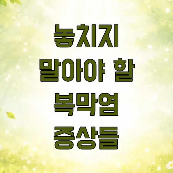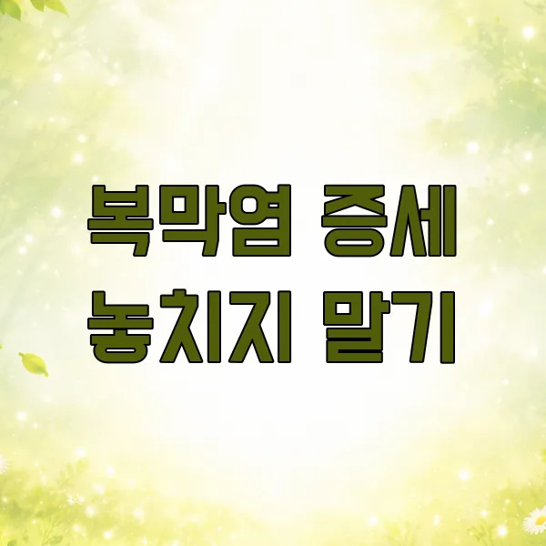 복막염은 시간이 지체되면 생명을 위협할 수도 있는 응급 질환이에요. 위에서 말씀드린 증상 중 하나라도 의심된다면, 절대로 지체하지 말고 즉시 응급실을 방문해야 해요.