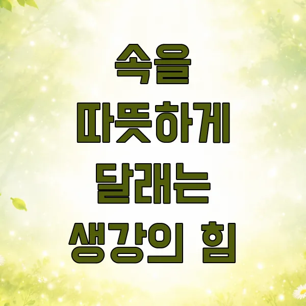환절기나 속이 차가울 때 생강만큼 좋은 식품도 드물어요. 생강의 매운맛을 내는 진저롤과 쇼가올 성분은 혈액순환을 촉진하고 위를 따뜻하게 해주어 소화 효소 분비를 활발하게 만들거든요.