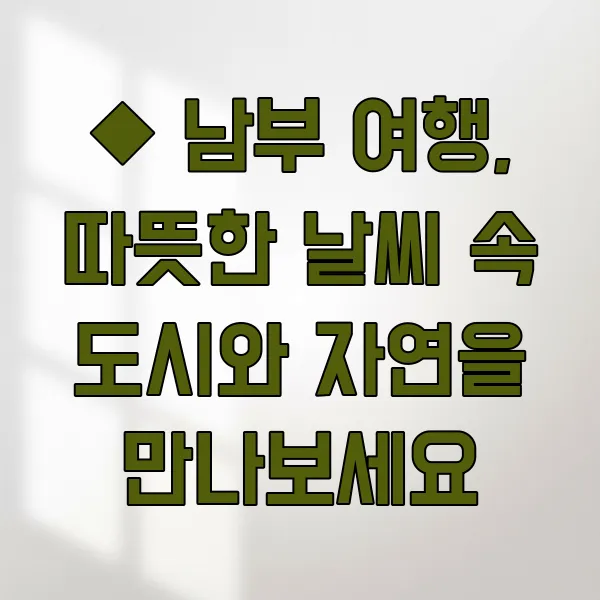 ◆ 남부 여행, 따뜻한 날씨 속 도시와 자연을 만나보세요