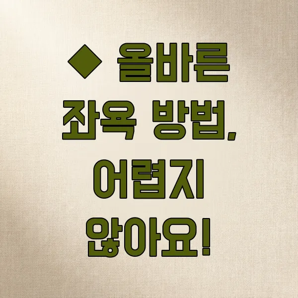 좌욕은 특별한 도구 없이 집에서도 쉽게 할 수 있어요. 가장 중요한 것은 역시 올바른 방법을 지키는 것이겠죠. 깨끗한 대야나 좌욕기에 미지근한 물을 받고 편안하게 앉아주세요. 이때 허리를 곧게 펴고 깊게 숨을 쉬면서 몸의 긴장을 푸는 것이 좋답니다. 좌욕 후에는 물기를 부드럽게 닦아내고, 필요하다면 보습제를 사용해 피부를 보호해주세요.