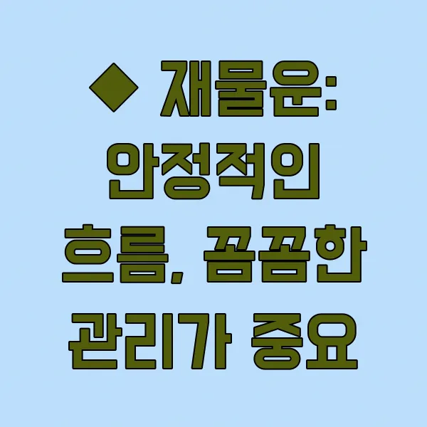 ◆ 재물운: 안정적인 흐름, 꼼꼼한 관리가 중요