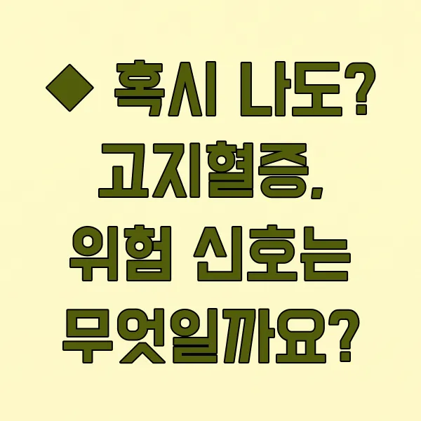 ◆ 혹시 나도? 고지혈증, 위험 신호는 무엇일까요?