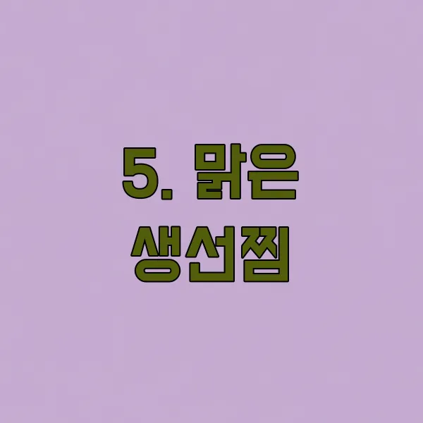 대구나 도미처럼 담백한 흰살 생선을 선택하여 맑게 찌는 것이 가장 좋아요. 소금이나 후추 외에 다른 양념은 최소화하고, 담백한 맛을 살려 섭취하는 것이 중요합니다.