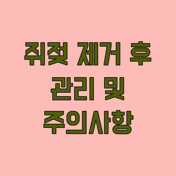 어떤 방법으로 쥐젖을 제거하든, 시술 후 관리 는 매우 중요합니다. 시술 부위에 딱지가 앉았다면 절대 억지로 떼어내지 마세요. 자연스럽게 떨어지도록 두어야 흉터나 색소 침착을 최소화할 수 있습니다. 딱지가 떨어진 후에도 해당 부위는 아직 연약하므로, 자외선 차단에 신경 써주시는 것이 좋습니다.