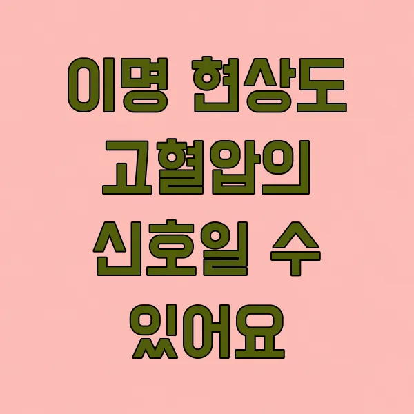 이명은 스트레스나 피로, 소음 노출 등 다양한 원인으로 발생하지만, 고혈압이 원인일 경우 혈압 조절을 통해 증상이 완화되는 경우도 많아요. 갑자기 이명 증상이 심해지거나 지속된다면, 고혈압 검사를 받아보는 것을 고려해 보세요.
